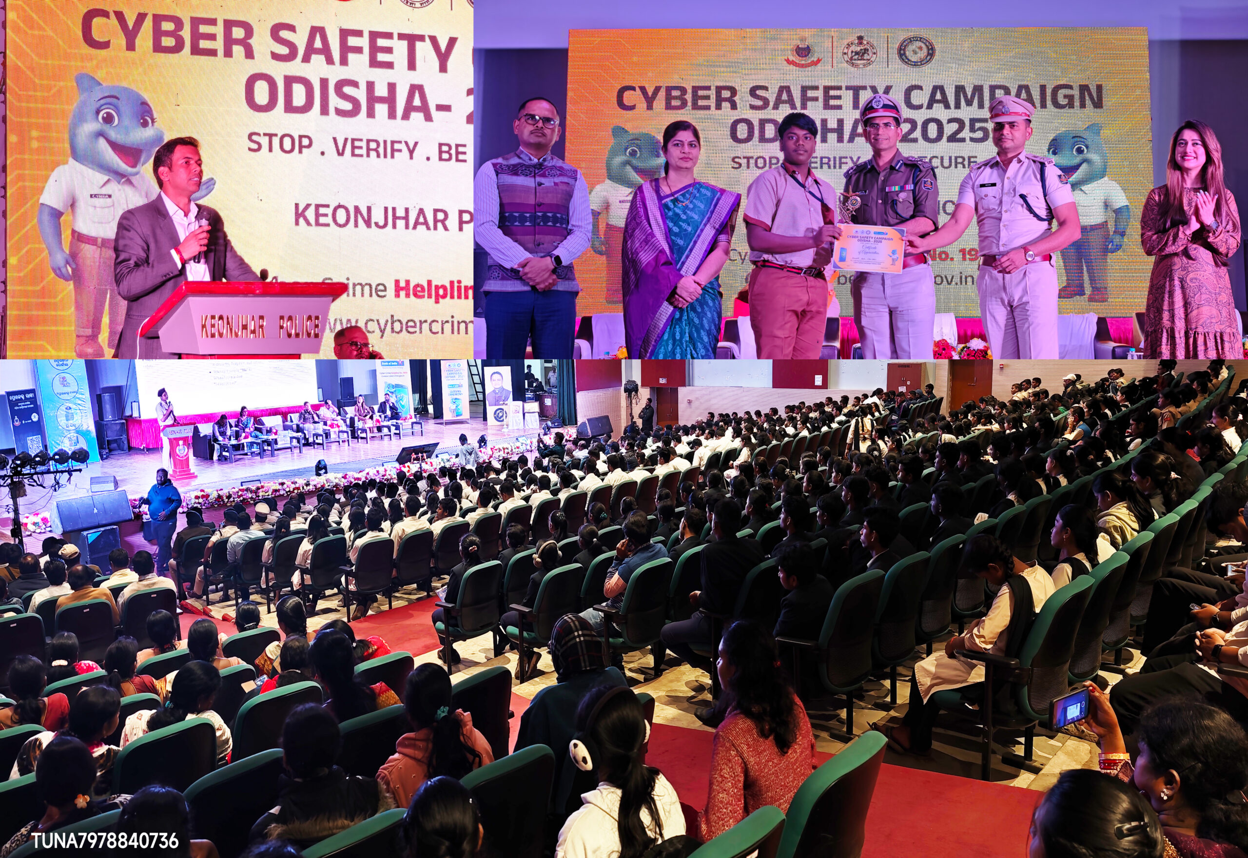 କେନ୍ଦୁଝର :11//12,(ଉତ୍କଳ ସମାଚାର)ଆଜି କେନ୍ଦୁଝର ଅଡିଟରୀୟମ ରେ କେନ୍ଦୁଝର ପୋଲିସ ପକ୍ଷରୁ ସାଇବର ସେଫଟି କ୍ୟାମ୍ପେନ ଓଡିଶା ୨୦୨୫ ଆୟୋଜିତ ହୋଇଯାଇଛି, ମାସାଧିକ କାଳ ଏହି କାର୍ଯ୍ୟକ୍ରମ ର ଉଦଯାପନୀ ସମାରୋହରେ ଯୁବଗୋଷ୍ଠୀ, ସ୍ୱୟଂସହାୟକ ଗୋଷ୍ଠୀ, କଲେଜ ଛାତ୍ର ଛାତ୍ରୀ, ଡାକ୍ତରୀ ଛାତ୍ର ଛାତ୍ରୀ, ସାଧାରଣ ନାଗରିକ, ଗଣମାଧ୍ୟମ ପ୍ରତିନିଧି, ବିଭିନ୍ନ ରାଜନୈତିକ ଦଳ ସଦସ୍ୟ ଶହ ଶହ ସଂଖ୍ୟାରେ ଉପସ୍ଥିତି ଜାହିର କରି ଏହି ସଚେତନତା ସମାରୋହରୁ ବହୁ ଜ୍ଞାତବ୍ୟ ତଥ୍ୟ ଆହାରଣ କରିଥିଲେ, ପଶ୍ଚିମାଞ୍ଚଳ ଡିଆଇଜି ବ୍ରିଜେଶ ରାୟ ମୁଖ୍ୟଅତିଥି, ଜିଲ୍ଲାପାଳ ବିଶାଳ ସିଂ ସମ୍ମାନିତ ଅତିଥି, ବନ୍ୟପ୍ରାଣୀ ତତ୍ୱାବଧାରକ ଧନରାଜ ଏଚଡି, କେନ୍ଦୁଝର ପୌରଅଧ୍ୟକ୍ଷା ଶ୍ରୀମତୀ ନିକୁ ସାହୁ ଅନ୍ୟତମ ଅତିଥି, ବ୍ରାଣ୍ଡ ଅମ୍ବାସାଡର ଓଲିଉଡ଼ ର ଚର୍ଚ୍ଚିତ ଅଭିନେତ୍ରୀ ଏଲିନା ସାମନ୍ତରାୟ ପ୍ରମୁଖ ଯୋଗ ଦେଇ ସାଇବର ସଚେତନତା ସମ୍ପର୍କ ରେ ମତାମତ ପ୍ରଦାନ କରି ସତର୍କ ରହିବାକୁ ଆହ୍ୱାନ ଦେଇଥିଲେ, କେନ୍ଦୁଝର ଆରକ୍ଷୀ ଅଧିକ୍ଷକ ନିତିନ କୁଶଳକର ସଭାପତିତ୍ୱ କରିଥିଲେ, ବିଭିନ୍ନ ସଚେତନଧର୍ମୀ ପ୍ରାମାଣିକ ଚଳଚିତ୍ର ପ୍ରଦର୍ଶନ ସହିତ କ୍ଷୁଦ୍ର ନାଟକ ଓ ସଂଗୀତ ପରିବେଷଣ କରାଯିବା ସହିତ ରାଜ୍ୟରେସର୍ବ ପ୍ରଥମ ଥର ପାଇଁ ଅନୁସନ୍ଧାନ ପୋର୍ଟାଲ, ଇ ଡ୍ୟୁଟି ପରିଚାଳନା, ଇ ବିଟ ଓ ପ୍ରୋଜେକ୍ଟ ରାକ୍ଷୀ ର ଶୁଭ ଉନ୍ମୋଚନ କରାଯାଇଥିଲା, ଏହା ମାଧ୍ୟମରେ ସାଧାରଣ ଜନତା ତୁରନ୍ତ ସମସ୍ତ ପ୍ରକାର ପୋଲିସ ସେବା ପାଇବା ସହିତ ସାଇବର ସୁରକ୍ଷା ପାଇପାରିବେ, ମାନ୍ୟବର ମୁଖ୍ୟମନ୍ତ୍ରୀ ମୋହନଚରଣ ମାଝୀ ଆଭାସୀ ମାଧ୍ୟମରେ ସମବେତ ଗୋଷ୍ଠୀ ଙ୍କୁ ସାଇବର ସଚେତନତା ସମ୍ପର୍କ ରେ ଶପଥ ପଠା କରାଇଥିଲେ, ଏ ଅବସରରେ ଆୟୋଜିତ ପ୍ରବନ୍ଧ ଲିଖନ ପ୍ରତିଯୋଗିତା ର କୃତୀ ପ୍ରତିଯୋଗି ଙ୍କୁ ପୁରସ୍କୃତ କରାଯାଇଥିଲା, ସାଇବର ଏକ୍ସପର୍ଟଗଣ ଉନ୍ମୋଚିତ ପୋର୍ଟାଲ ର ବ୍ୟବହାର ଓ ଉପକାରିତା ସମ୍ପର୍କ ରେ ତଥ୍ୟ ପ୍ରଦାନ କରିଥିଲେ,