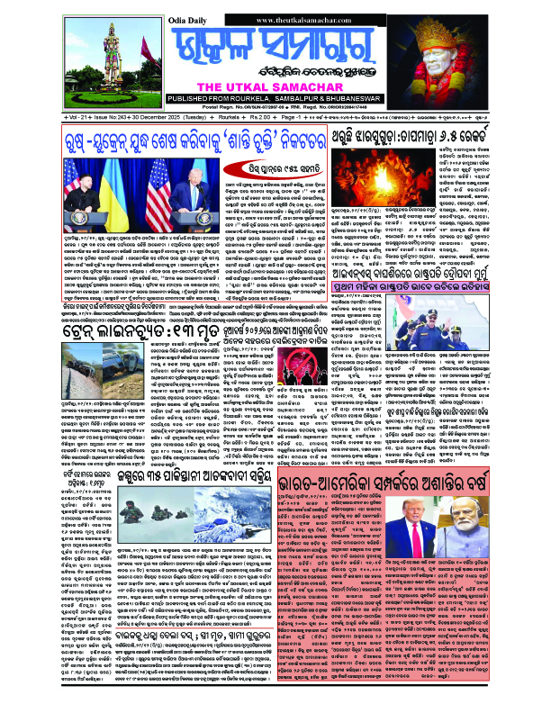 E-Paper 30.12.2025 Utkal Samachar December 30, 2025 1 minute read The Utkal Samachar Dec 30_compressedDownload About the Author Utkal Samachar Administrator Visit Website View All Posts Post navigation Previous: ୩୦୦ ୟୁନିଟ ବିଦ୍ୟୁତ ଛାଡ଼ ଦାବିରେ କଂଗ୍ରେସର ବିକ୍ଷୋଭNext: ୩ଟି ପିସ୍ତଲ ଓ ୩୫ ଗୁଳି ସହ ୩ ଅପରାଧିଙ୍କୁ ଗିରଫ କଲା ରାଉରକେଲା ପୋଲିସ୍ Leave a Reply Cancel replyYour email address will not be published. Required fields are marked *Comment * Name * Email * Website Save my name, email, and website in this browser for the next time I comment. Related Stories E-Paper 2-3-2026 Utkal Samachar March 2, 2026 0 E-Paper 1-3-2026 Utkal Samachar March 1, 2026 0 E-Paper 26-2-2026 Utkal Samachar February 27, 2026 0