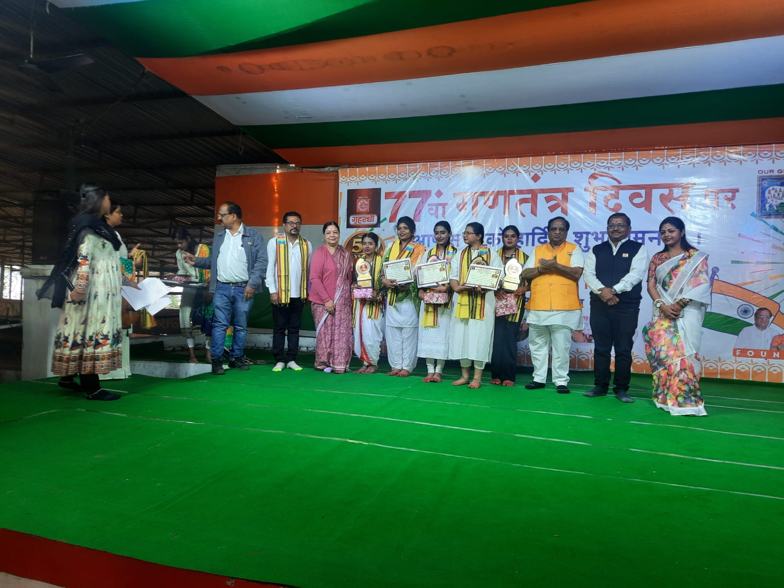 ରାଉରକେଲା ୨୭/୧,(ଉତ୍କଳ ସମାଚାର) ବିଭିନ୍ନ ସଂଗଠନ ପକ୍ଷରୁ ୭୭ତମ ଗଣତନ୍ତ୍ର ଦିବସ ପାଳିତ ଗୃହସ୍ଥୀ ଉଦ୍ୟୋଗରେ ୭୭ତମ ଗଣତନ୍ତ୍ର ଦିବସ ଉତ୍ସାହର ସହ ପାଳିତଆଜି ଗୃହସ୍ଥୀ ଉଦ୍ୟୋଗ ପ୍ରାଇଭେଟ୍ ଲିମିଟେଡ୍ ପରିସରରେ ୭୭ତମ ଗଣତନ୍ତ୍ର ଦିବସ ଅତ୍ୟନ୍ତ ଉତ୍ସାହ ଓ ଦେଶଭକ୍ତି ଭାବନା ସହ ପାଳନ କରାଗଲା।କାର୍ଯ୍ୟକ୍ରମର ଆରମ୍ଭ ସିଏମଡି ଶ୍ରୀ ଗଣେଶ ପ୍ରସାଦ ବଗଡ଼ିଆ, ଡାଇରେକ୍ଟର ଶ୍ରୀମତୀ ମଞ୍ଜୁ ଦେବୀ ବଗଡ଼ିଆ ଏବଂ ସିଇଓ ଶ୍ରୀ ଅମିତ ଅଗ୍ରୱାଲଙ୍କ ଦ୍ୱାରା ଧ୍ୱଜାରୋହଣ ସହ ହେଲା। ପରେ ଦରବାରରେ ସଜା ଗୋମାତା, ଗୁରୁମାତା ଓ ପିତୃପୁରୁଷଙ୍କ ସମ୍ମୁଖରେ ଦୀପ ପ୍ରଜ୍ୱଳନ କରାଗଲା।ଉପସ୍ଥିତ ସମସ୍ତ ସମ୍ମାନିତ ଅତିଥିମାନଙ୍କୁ ପୁଷ୍ପଗୁଚ୍ଛ ଦ୍ୱାରା ସ୍ୱାଗତ କରାଗଲା। ତାପରେ ଜାତୀୟ ସଙ୍ଗୀତ ପାଠ କରାଗଲା। ଗଣତନ୍ତ୍ର ଦିବସ ଅବସରରେ ଅତିଥିମାନେ ତାଙ୍କର ପ୍ରେରଣାଦାୟକ ବିଚାର ଅଂଶୀଦାର କରିଥିଲେ।ଜର୍ଣ୍ଣାଲିଷ୍ଟସ୍ ଆସୋସିଏସନରେ ୧୯୫୦ ଆଜି ଜାନୁଆରୀ ୨୬ ଦିନରେ ଭାରତ ଏକ ସାର୍ବଭୌମ ଗଣତାନ୍ତ୍ରିକ ରାଷ୍ଟ୍ରରେ ପରିଣତ ହୋଇଥିଲା। ଆଜି ସମଗ୍ର ଦେଶରେ ୭୭ତମ ସାଧାରଣତନ୍ତ୍ର ଦିବସ ପାଳନ କରାଯାଉଥିବା ବେଳେ ବିଭିନ୍ନ ଅନୁଷ୍ଠାନ ପକ୍ଷରୁ ନିଜ ନିଜ କାର୍ଯ୍ଯାଳୟ ପରିସରରେ ୭୭ତମ ସାଧାରଣତନ୍ତ୍ର ଦିବସ ପାଳନ କରାଯାଇଛି। ଜର୍ଣ୍ଣାଲିଷ୍ଟସ୍ ଆସୋସିଏସନ ରାଉରକେଲା କାର୍ଯ୍ୟାଳୟ ପରିସରରେ ଆଜି ୭୭ତମ ସାଧାରଣତନ୍ତ୍ର ଦିବସ ମହାସମାରୋହରେ ପାଳିତ ହୋଇଯାଇଛି। ଏହି ଅବସରରେ ମୁଖ୍ୟ ଅତିଥି ଭାବରେ ବରିଷ୍ଠ ସାମ୍ବାଦିକ ସତ୍ଯାନନ୍ଦ ମହାନ୍ତି ଯୋଗଦେଇ ଜାତୀୟ ପତାକା ଉତ୍ତୋଳନ କରିଥିଲେ। କାର୍ଯ୍ୟକ୍ରମକୁ ବରିଷ୍ଠ ସାମ୍ବାଦିକ ସତ୍ଯାନନ୍ଦ ବେହେରା ସଂଯୋଜନା କରିଥିଲାବେଳେ, ଜର୍ଣ୍ଣାଲିଷ୍ଟସ୍ ଆସୋସିଏସନର ସଭାପତି ବିରଞ୍ଚି ନାରାୟଣ ପଟ୍ଟନାୟକ, ସାଧାରଣ ସମ୍ପାଦକ ଅରୁଣ ଦାଶ, ସହ-ସମ୍ପାଦକ ଗନ୍ଦୁର ଓରାମ, ଉପସଭାପତି କୁଞ୍ଜବିହାରୀ ରାଉତ, ପି ପି ରାୟ, ସମାଜସେବୀ ଶୈଳେନ୍ଦ୍ର ମହାନ୍ତି, ପ୍ରମୋଦ କୁମାର ନାତୁଲ୍ଯ, ସାମ୍ବାଦିକ ରଜନୀକାନ୍ତ ସ୍ବାଇଁ, ସନ୍ତୋଷ ସ୍ବାଇଁ, ସସ୍ମିତା ପ୍ରଧାନ, ସୁଦୀପ ଦେ, ଦିଲ୍ଲୀପ ଶର୍ମା, ଶୈଳେନ୍ଦ୍ର କୁମାର ସାହୁ, ସରୋଜ ବେହେରା, ସରୋଜ କୁମାର ଜେନା, ବିବେକ ଦାସ, ସୁରେଶ ନନ୍ଦ, ରାଜଦୀପ ମହାନ୍ତି, ସୁମନ୍ତ ଜେନା, କମଳାକାନ୍ତ ରାଉତ, ବିମଲ ପଟ୍ଟନାୟକ, ରାକେଶ ସିଂହ, ଆଜିମ୍ ଖାଁ, ଇରସାଦ୍ ଖାଁ, ସୌମ୍ୟରଞ୍ଜନ ରାଉତ, ରାନୁ ମହାପାତ୍ର, ନରେନ୍ଦ୍ର ସିଂ କାଲା, ଇନ୍ଦ୍ର, କୁମର ବେହେରା, ଦୀନେଶ ମିଶ୍ର, ପ୍ରମୋଦ ଜଗଦେବ ଆଡଭୋକେଟ ପ୍ରବାଳ ରଞ୍ଜନ ବାରିକ୍ ପ୍ରମୁଖ ଉପସ୍ଥିତ ହୋଇ ୭୭ତମ ସାଧାରଣତନ୍ତ୍ର ଦିବସ ପାଳନ କରିଥିଲେ।ବ୍ରାହ୍ମଣ କଲ୍ୟାଣ ସଭା ପକ୍ଷରୁ ନିର୍ମଳ ମାର୍କେଟ ସ୍ଥିତ ସମାଜ କାର୍ଯ୍ୟାଳୟ ସମ୍ମୁଖରେ ୭୭ତମ ଗଣତନ୍ତ୍ର ଦିବସ ଅତ୍ୟନ୍ତ ଆଡମ୍ବର ସହକାରେ ପାଳିତ ହୋଇଯାଇଛି। ବ୍ରାହ୍ମଣ କଲ୍ୟାଣ ସଭାର ସଭାପତି ବିନୟ ଶର୍ମା ପତାକା ଉତ୍ତୋଳନ କରିଥିଲେ।ଏହି କାର୍ଯ୍ୟକ୍ରମରେ ସମାଜର ଉପସଭାପତି ଦିଲୀପ ଶର୍ମା, ଟିଙ୍କୁ ଚୌମାଲ, ସମ୍ପାଦକ ସଞ୍ଜୟ ସିଖୱାଲ, କୋଷାଧ୍ୟକ୍ଷ ଜୟପ୍ରକାଶ ଶର୍ମା, ସହ-ସମ୍ପାଦକ ପ୍ରଦ୍ୟୁମ୍ନ ଶର୍ମା, ମହେଶ ଶର୍ମା, ପୂର୍ବତନ ସଭାପତି ଜଗଦୀଶ ହରିତ, ଭୱଁରଲାଲ ଚୋଟିଆ, ମୁରାରୀ ଲାଲ ଚୌମାଲ ଏବଂ ଶ୍ରବଣ ପାରିକ୍ ଉପସ୍ଥିତ ଥିଲେ। ଏଥିସହିତ ବ