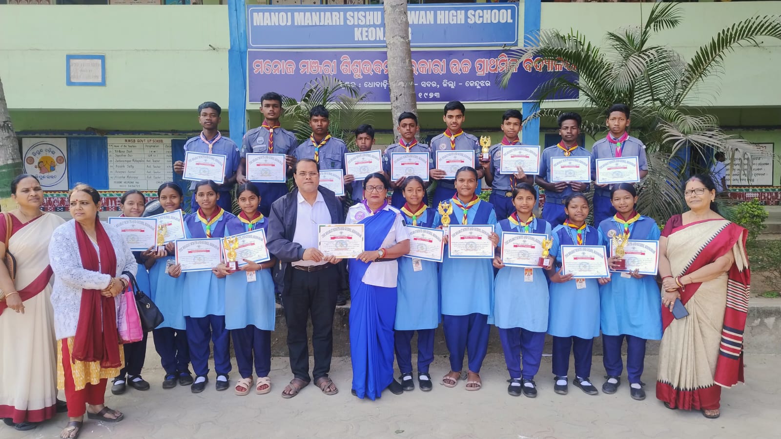 କେନ୍ଦୁଝର :6//2,(ଉତ୍କଳ ସମାଚାର)କେନ୍ଦୁଝର ସଦରବ୍ଲକ ସନ୍ଥେ ଭଞ୍ଜ ହାଇସ୍କୁଲ ରେ ଅନୁଷ୍ଠିତ ତିନିଦିନିଆ ଭାରତସ୍କାଉଟଗାଇଡ଼ ପ୍ରଶିକ୍ଷଣ ଶିବିର ରେ ମନୋଜମଞ୍ଜରୀ ଶିଶୁଭବନ ଉଚ୍ଚବିଦ୍ୟାଳୟ ର ଅଠର ଜଣ ଛାତ୍ର ଛାତ୍ରୀ ଗାଇଡ଼ କ୍ୟାପଟେନ ସଂଯୁକ୍ତା ନାଥ ଙ୍କ ନେତୃତ୍ୱ ରେ ଶିବିର ରେ ଯୋଗ ଦେଇ ତାଲିମ ଗ୍ରହଣ କରିବା ସହିତ ବିଭିନ୍ନ ପ୍ରତିଯୋଗିତା ରେ ସକ୍ରିୟ ଅଂଶ ଗ୍ରହଣ କରି କଲର ପାର୍ଟ ରେ ପ୍ରଥମ, ନୋଟିଙ୍ଗ ରେ ପ୍ରଥମ, ଗ୍ରୁପ ଡ୍ୟାନ୍ସ ରେ ପ୍ରଥମ, ବ୍ୟାଣ୍ଡେଜ ରେ ଦ୍ଵିତୀୟ, ମାର୍ଚ୍ଚପାଷ୍ଟ ରେ ଦ୍ଵିତୀୟ, ସ୍କିଲୋରମା ରେ ତୃତୀୟ ସ୍ଥାନ ଅଧିକାର କରି ପୁରସ୍କୃତ ହେବା ସହିତ ବିଦ୍ୟାଳୟ କୁ ଗୌରାବାନ୍ୱିତ କରିଛନ୍ତି, ଏହି କ୍ୟାମ୍ପୋରୀ ରେ ସଫଳତା ପାଇଁ ପ୍ରଧାନ ଶିକ୍ଷକ ତପନ କୁମାର ପଣ୍ଡା ସମସ୍ତ ଙ୍କୁ ଅଭିନନ୍ଦନ ଜ୍ଞାପନ କରିବା ସହିତ ଆଗାମୀ ସମୟରେ ଏହି ପ୍ରତିଭା କୁ ରାଜ୍ୟସ୍ତରରେ ଉଜ୍ଜୀବିତ କରିବାକୁ ପ୍ରେରଣାଦାୟକ ହେବବୋଲି ଅଭିହିତ କରିଛନ୍ତି