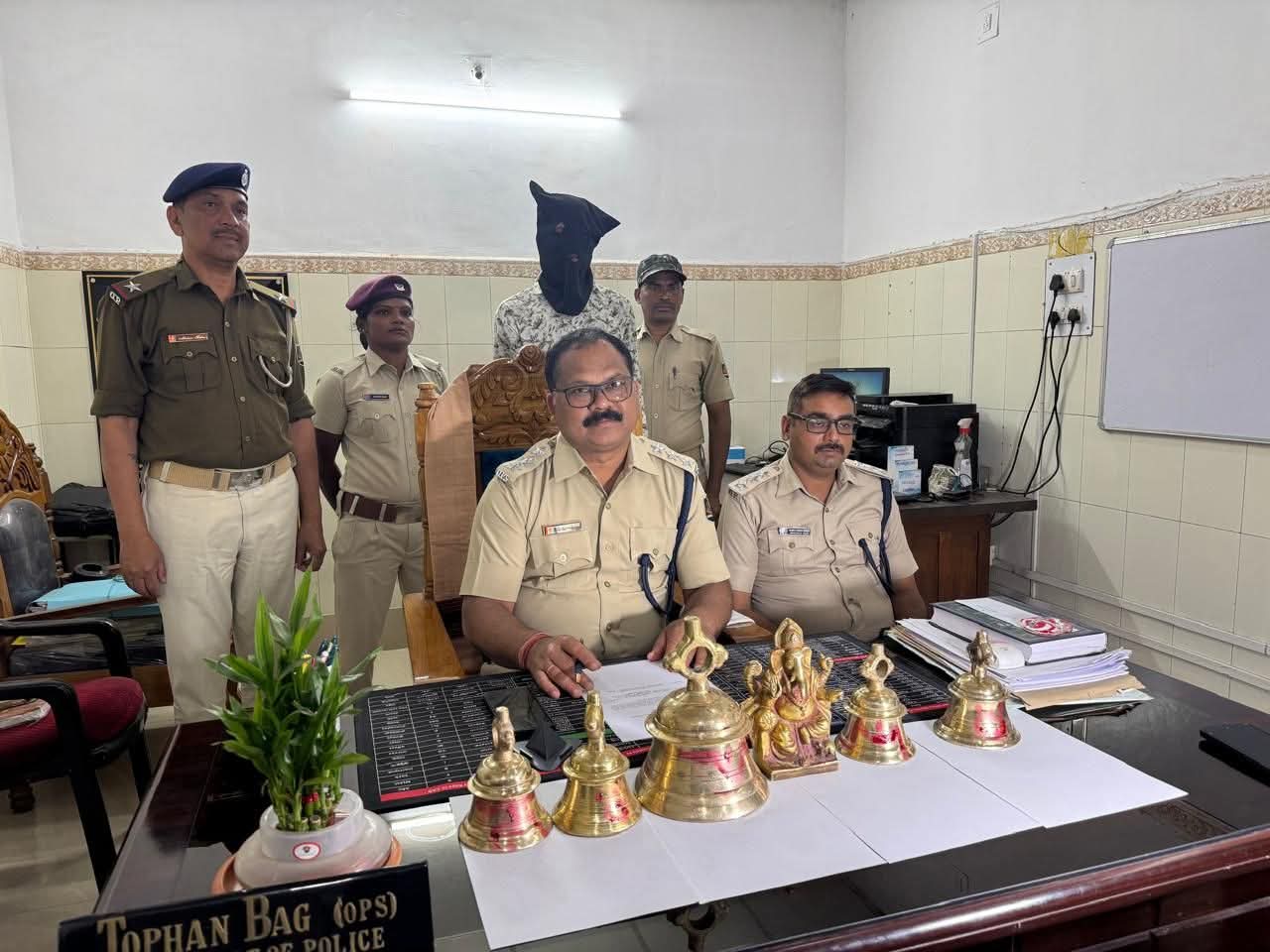 ସମ୍ବଲପୁର,୨୧/୦୨,(ଉତ୍କଳ ସମାଚାର),(ସରୋଜ ସାହୁ):ସମ୍ବଲପୁର ସହରର ବିଭିନ୍ନ ପ୍ରସିଦ୍ଧ ମନ୍ଦିରରୁ ଚୋରି କରୁଥିବା ଜଣେ ଅଭିଯୁକ୍ତକୁ ଟାଉନ ଥାନା ପୋଲିସ ଗିରଫ କରିବାରେ ସଫଳ ହୋଇଛି। ଗିରଫ ଅଭିଯୁକ୍ତ ଜଣକ ହେଲେ ସୁନ୍ଦରଗଡ଼ ଜିଲ୍ଲା ଲେଫ୍ରିପଡ଼ା ଥାନା ଅନ୍ତର୍ଗତ ପୋଥାଭୁଇଁ ଛିନୁପଡ଼ାର ମୁନୁ ଓରଫ ରଜନୀକାନ୍ତ ଭଇଁସାଲ (୨୫)।ସୂଚନା ଅନୁଯାୟୀ, ଗତ ୧୭ ଫେବୃଆରୀ ସନ୍ଧ୍ୟାରେ ବାଲିବନ୍ଧା ସ୍ଥିତ ଶ୍ରୀ ସୋମନାଥ ବାବା ମନ୍ଦିରରୁ ଏକ ପ୍ରାୟ ୨ କିଲୋଗ୍ରାମ ଓଜନର ପିତ୍ତଳ ଗଣେଶ ମୂର୍ତ୍ତି ଚୋରି ହୋଇଥିଲା। ଏ ନେଇ ମନ୍ଦିର ଟ୍ରଷ୍ଟ ସଭ୍ୟ ଲୋକନାଥ ପାଣ୍ଡେ ଟାଉନ ଥାନାରେ ଅଭିଯୋଗ କରିଥିଲେ। ପୋଲିସ ତଦନ୍ତ କରି ଅଭିଯୁକ୍ତକୁ ଧରିବା ସହ ତା’ ନିକଟରୁ ଚୋରି ହୋଇଥିବା ଗଣେଶ ମୂର୍ତ୍ତି, ୫ଟି ପିତ୍ତଳ ଘଣ୍ଟି (ଗୋଟିଏ ବଡ଼ ଓ ୪ଟି ଛୋଟ) ଜବତ କରିଛି। ଉଲ୍ଲେଖଯୋଗ୍ୟ ଯେ ତାର ଫଟୋ ବାଲି ବନ୍ଧା ସୋମନାଥ ମନ୍ଦିର ରାସ୍ତାରେ ସିସିଟିଭି କ୍ୟାମେରା ରୁ ମିଳିଥିଲା। ତଦନ୍ତରୁ ଜଣାପଡିଛି ଯେ, ଅଭିଯୁକ୍ତ ଜଣକ କେବଳ ସୋମନାଥ ମନ୍ଦିର ନୁହେଁ, ବରଂ ଧମା ରୋଡ଼ ସ୍ଥିତ ଲିମସରିଏନ ମନ୍ଦିର ଏବଂ ଦେଉଳବନ୍ଧ ସ୍ଥିତ ବଟେଶ୍ଵର ବାବା ମନ୍ଦିରରୁ ମଧ୍ୟ ଘଣ୍ଟି ଚୋରି କରିଥିଲା। ପୋଲିସ କେସ୍ ନମ୍ବର ୪୯/୨୦୨୬ ଅନୁଯାୟୀ ମାମଲା ରୁଜୁ କରି ଅଭିଯୁକ୍ତକୁ କୋର୍ଟ ଚାଲାଣ କରିଛି। ସଦର ଏସଡ଼ିପିଓ ତୋଫାନ ବାଗ ଆୟୋଜିତ ସାମ୍ବାଦିକ ସଂମ୍ବିଳନୀ ରେ ସୂଚନା ଦେଇଛନ୍ତି I