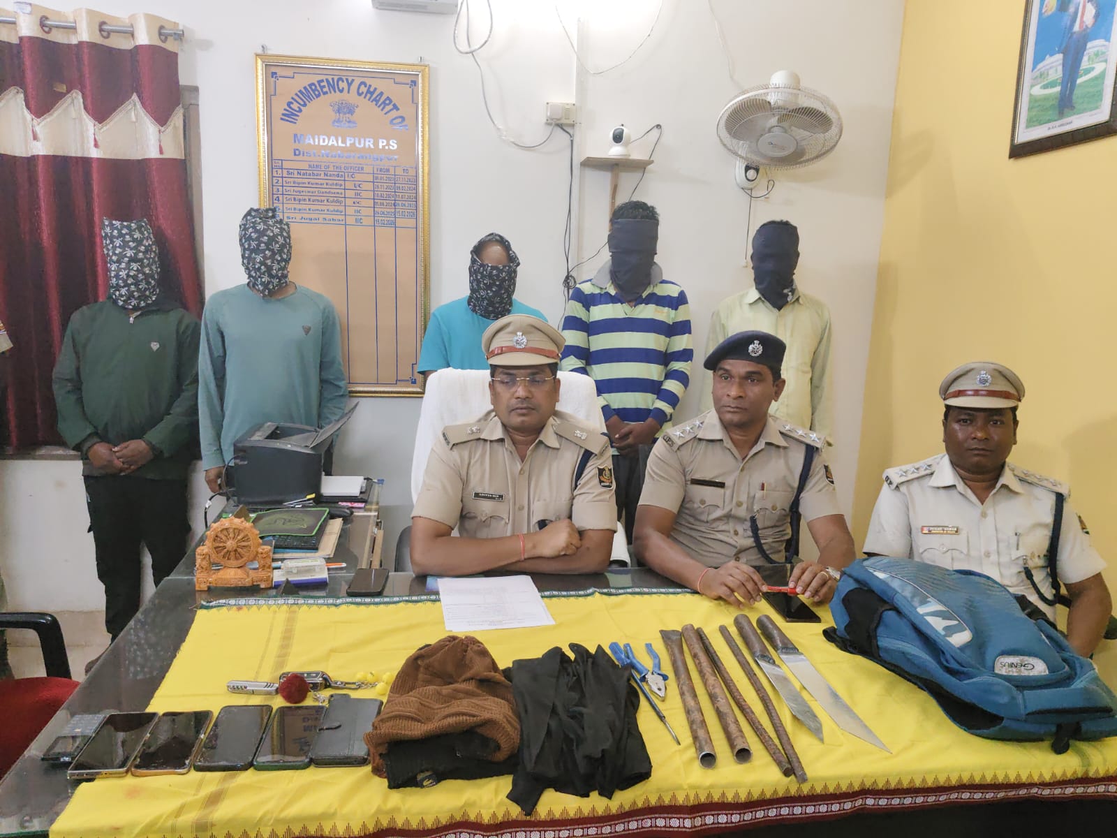ପାପଡାହାଣ୍ଡି:1//3,(ଉତ୍କଳ ସମାଚାର)-ନବରଙ୍ଗପୁର ଜିଲ୍ଲା ପାପଡାହାଣ୍ଡି ବ୍ଲକର ମୈଦଳପୁର ଥାନା ରେ ମୈଦଳପୁର ପୋଲିସ 27:2:26 ଶୁକ୍ରବାର ଦିନ ସନ୍ଧ୍ୟାରେ ପେଟ୍ରାଲିଂ କରୁଥିବା ବେଳେ ଏନ ଏଚ୍ ୨୬ କୁ ଲାଗିକି ରହିଥିବା ସେମଳା ଜଙ୍ଗଲ ଭିତରେ କିଛି ଦୁର୍ବୃତ ଲୁଚି ରହିଥିବା ପୋଲିସ କୁ ଖବର ମିଳିଥିଲା। ଖବର ପାଇଁ ସେମଳା ଜଙ୍ଗଲ ଭିତରେ ପୋଲିସ ଚଢାଉ କରି ଲୁଚି ରହିଥିବା ୫ ଜଣ ଦୁର୍ଵୁତ ମାନଙ୍କୁ ଧରି ଥିବାଵେଳେ ଆଉ କିଛି ଦୁର୍ବୃତ କେଉଁ ଆଡେ ଚମ୍ପଟ ମାରିଥିଲେ ! ଦୁର୍ଵୁର୍ତ ମାନଙ୍କ ବ୍ୟବହାର କରୁଥିବା ଏକ ବୋଲେର ଗାଡି ମଟରସାଇକେଲ ସମେତ ବିଭିନ୍ନ ମାରଣାସ୍ତ୍ର ଛୁରି ଖଣ୍ଡା ,ଭୁଜାଲି ୬ ଟି ମୋବାଇଲ କୁ ଜଵତ କରିଛି ପୋଲିସ । ଧରା ପଡ଼ିଥିବା ୫ ଜଣ ଦୁର୍ବୃତ ଙ୍କୁ ମୈଦଲପୁର ଥାନା ରେ ଅଟକ ରଖି ପଚରାଉଚରା କରିବା ପରେ ଦୁର୍ବୃତ ମାନେ ମୈଦଳପୁର ଅଞ୍ଚଳର ଜଣେ ବ୍ୟବସାୟୀଙ୍କ ଘରେ ଚୋରି ଡକାୟତି କରିବା ପାଇଁ ଯୋଜନା କରିଥିବା ସ୍ଵିକାର କରିଛନ୍ତି । ମୈଦଲପୁର ଥାନା କେସ ନମ୍ଵର -୨୩/୨୬ ତା – ୨୭/୦୨/୨୦୨୬ ରିଖ ରେ ଇଉ/ଏସ୍ ୩୧୦(୪),୩୧୦(୫) ,୧୧୧(୪) ,୨୭ ଅସ୍ତ୍ରଶସ୍ତ୍ର ଏକ୍ଟ ରେ କୋର୍ଟ ଚାଲାଣ କରାଯିବ ବୋଲିି ମୈଦଲପୁର ଥାନା ପରିସରରେ ଆଜି ନବରଙ୍ଗପୁର ଜିଲ୍ଲା ଅତରିକ୍ତ ଆରକ୍ଷୀ ଅଧିକ୍ଷକ ଶ୍ରୀ ଆଦିତ୍ୟ ସେନ୍ ଏକ ସାମ୍ବାଦିକ ସମ୍ମିଳନୀ ସୂଚନା ଦେଇଛନ୍ତି।