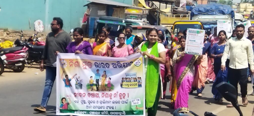 ପାପଡାହାଣ୍ଡି -7:3:26-(ଉତ୍କଳ ସମାଚାର)ଆଜି ପାପଡାହାଣ୍ଡି ପଂଚାୟତ ସମିତି ଆନୁକୂଲ୍ୟରେ ପାପଡାହାଣ୍ଡି ଠାରେ ନିଶା ମୁକ୍ତ ଓଡିଶା, ନିଶା ମୁକ୍ତ ଭାରତ ର ସଂକଳ୍ପ ଅଭିଯାନ ର ଶୁଭାରମ୍ଭ ହୋଇଛି, ପାପଡାହାଣ୍ଡି ନୀଳକଣ୍ଠେଶ୍ଵର ମନ୍ଦିର ପ୍ରାଙ୍ଗଣ ଠାରୁ ଏକ ବିରାଟ ପଟୁଆର ରେ ପାପଡାହାଣ୍ଡି ବ୍ଲକ ଅଧ୍ୟକ୍ଷା ହେମଲତା ମାଝୀ, ଉପାଧ୍ୟକ୍ଷ ସୁଶାନ୍ତ କୁମାର ବେହେରା,ଗୋଷ୍ଟି ଉନ୍ନୟନ ଅଧିକାରୀ କପିଳଦେବ ସାହୁ, ଜିପିଓ କମଳେନ୍ଦୁ ଦାସ , ବିଏସଏସଓ ସୁବ୍ରତ କିସାନ, ପାପଡାହାଣ୍ଡି ସରପଞ୍ଚ ଚନ୍ଦ୍ରଶେଖର ମାଝୀ, ବିପିସି ଶଶିକାନ୍ତ ଦାସ, ସିଡିପିଓ ପାପଡାହାଣ୍ଡି, ଏମବିକେ କର୍ମୀ, ଗ୍ରାମବାସୀ ପ୍ରମୁଖ ଯୋଗ ଦେଇ ନିଶା ମୁକ୍ତ ଭାରତ ଗଠନ ପାଇଁ ବିଭିନ୍ନ ପ୍ରକାର ସ୍ଲୋଗାନ ଦେଇ ପାପଡାହାଣ୍ଡି ଗ୍ରାମ ପରିକ୍ରମା କରି ବ୍ଲକ କାର୍ଯ୍ୟାଳୟ ଠାରେ ପହଂଚି ନିଶା ମୁକ୍ତ ଓଡିଶା, ନିଶା ମୁକ୍ତ ଭାରତ ଗଠନ ପାଇଁ ସମସ୍ତେ ସଂକଳ୍ପ ପାଠ କରିଥିଲେ, ନିଶା ଏକ ବିଷ ଏଥି ଯୋଗୁ ପରିବାର ଏବଂ ସମାଜକୁ ମଧ୍ୟ ନଷ୍ଟ କରେ, ସ୍ୱାସ୍ଥ୍ୟହାନି ହୁଏ, ଆର୍ଥିକ ସଙ୍କଟ ସୃଷ୍ଟି ହୁଏ, ସମାଜରେ ଅପରାଧ ବୃଦ୍ଧି ପାଇଥାଏ , ଏଥି ପାଇଁ ସମାଜରେ ଏହାର କୁପରିଣାମ ବିଷୟରେ ଅନ୍ୟମାନଙ୍କୁ ସଚେତନ କରିବା ଏବଂ ନିଶାମୁକ୍ତ ଗାଁ ଓ ନିଶାମୁକ୍ତ ସହର ଗଠନରେ ସହଯୋଗ କରିବା ସହିତ ଦୃଢ ମନୋବଳ ରଖିବା , ଯୋଗ ଓ ପ୍ରାଣାୟାମ କରିବା ପାଇଁ ଉପସ୍ଥିତ ସମସ୍ତଙ୍କୁ ସଂକଳ୍ପ ପାଠ କରାଯାଇଥିଲା l