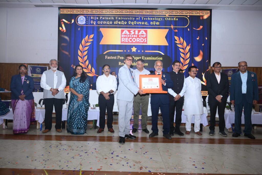 ବିଶ୍ବବିଦ୍ୟାଳୟର ଏହି ସଫଳତାକୁ “ଏସିଆ ବୁକ୍ ଅଫ୍ ରେକର୍ଡସ୍” ଏବଂ” “ଇଣ୍ଡିଆ ବୁକ୍ ଅଫ୍ ରେକର୍ଡସ୍”ରେ ସ୍ଥାନିତ କରାଯାଇଛି। ଏହି ଅବସରରେ ବିଜୁ ପଟ୍ଟନାୟକ ବୈଷୟିକ ବିଶ୍ଵବିଦ୍ୟାଳୟର ନେତାଜୀ ସୁଭାଷ ଚନ୍ଦ୍ର ବୋଷ ଅଡିଟୋରିୟମରେ ଆୟୋଜିତ ଏକ ସ୍ବତନ୍ତ୍ର ଅଭିନନ୍ଦନ ଜ୍ଞାପନ ସମାରୋହରେ ମୁଖ୍ୟ ଅତିଥି ଭାବେ ରାଉରକେଲା ବିଧାୟକ ସାରଦା ପ୍ରସାଦ ନାୟକ, ସମ୍ମାନୀୟ ଅତିଥି ରାଉରକେଲା ଅତିରିକ୍ତ ଜିଲ୍ଲାପାଳ ତଥା ମହାନଗର ନିଗମ କମିଶନର ଦୀନାଃ ଦସ୍ତଗୀର୍, ରାଉରକେଲା ଇସ୍ପାତ କାରଖାନାର ଡିଆଇସି ଆଲୋକ ବର୍ମା, ରାଉରକେଲା ଇସ୍ପାତ କାରଖାନାର ପୂର୍ବତନ ଡିଆଇସି ଅତନୁ ଭୌମିକ, ବିଜୁ ପଟ୍ଟନାୟକ ବୈଷୟିକ ବିଶ୍ଵବିଦ୍ୟାଳୟର କୁଳପତି ପ୍ରଫେସର ଅମୀୟ କୁମାର ରଥ, କୁଳସଚିବ ଶ୍ରୀମତୀ ନିଶି ପୁନମ ମିଞ୍ଜଙ୍କ ସମେତ ଅନ୍ୟାନ୍ୟ ବିଭାଗର ପ୍ରଫେସର ପ୍ରମୁଖଙ୍କ ଉପସ୍ଥିତିରେ ଏସିଆ ବୁକ୍ ଅଫ୍ ରେକର୍ଡସ୍ ଏବଂ ଇଣ୍ଡିଆ ବୁକ୍ ଅଫ୍ ରେକର୍ଡସରେ ପରୀକ୍ଷା ଶେଷ ହେବାର ୨ ଦିନ ମଧ୍ୟରେ କଲମ ଓ କାଗଜରେ ସବୁଠାରୁ ଗତିଶୀଳ ପରୀକ୍ଷାର ପରୀକ୍ଷା ଫଳ ପ୍ରକାଶନ ପାଇଁ ବିଜୁ ପଟ୍ଟନାୟକ ବୈଷୟିକ ବିଶ୍ଵବିଦ୍ୟାଳୟର କୁଳପତି ପ୍ରଫେସର ଅମୀୟ କୁମାର ରଥଙ୍କ ସମେତ ବିପିୟୁଟିର କୁଳସଚିବ ଶ୍ରୀମତୀ ନିଶି ପୁନମ ମିଞ୍ଜ ଏବଂ ଅନ୍ୟାନ୍ୟ ବିଭାଗର ପ୍ରଫେସରମାନଙ୍କୁ ସମ୍ବର୍ଦ୍ଧିତ କରାଯାଇଥିଲା।