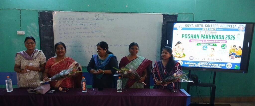 ରାଉରକେଲା:24//4,(ଉତ୍କଳ ସମାଚାର) ସାରା ଦେଶରେ ଚାଲିଥିବା ପୋଷଣ ପକ୍ଷ ପାଳନର ଶେଷ ଦିନ ଅବସରରେ ଗୁରୁବାର ରାଉରକେଲା ସରକାରୀ ସ୍ୱୟଂଶାସିତ ମହାବିଦ୍ୟାଳୟ ପକ୍ଷରୁ ଏକ ସଚେତନତା କାର୍ଯ୍ୟକ୍ରମ ଆୟୋଜିତ ହୋଇଯାଇଛି। ମହାବିଦ୍ୟାଳୟର ଯୁବ ରେଡ୍କ୍ରସ୍, ଓ ଜାତୀୟ ସେବା ଯୋଜନା ବିଭାଗର ମିଳିତ ଆନୁକୂଲ୍ୟରେ ଆୟୋଜିତ ଏହି କାର୍ଯ୍ୟକ୍ରମରେ ମହାବିଦ୍ୟାଳୟର ଅଧ୍ୟକ୍ଷା ଡ.ସସ୍ମିତା ସାମଲ ଅଧ୍ୟକ୍ଷତା କରିଥିଲେ। ଜାତୀୟ ସେବା ଯୋଜନାର କାର୍ଯ୍ୟକ୍ରମ ଅଧିକାରୀ ଡ. ଶୁଭଜ୍ୟୋତି ମହାପାତ୍ର ସ୍ୱାଗତ ଭାଷଣ ଦେଇ କାର୍ଯ୍ୟକ୍ରମ ଆୟୋଜନ ସମ୍ପର୍କରେ ସୂଚନା ଦେଇଥିଲେ। ଡ.ସାମଲ ପ୍ରଧାନମନ୍ତ୍ରୀ ପୋଷଣ ଯୋଜନାର କାର୍ଯ୍ୟକାରୀତା ସମ୍ପର୍କରେ ସୂଚନା ଦେଇଥିଲେ। ଏଥିରେ ବକ୍ତାଭାବରେ ଶିକ୍ଷା ବିଭାଗର ମୁଖ୍ୟ ଲଳିତା ମୁକ୍ତା ବାର୍ଲା ଯୋଗଦେଇ ପୋଷଣ ଯୋଜନାର ଗୁରୁତ୍ୱ ଓ ଆବଶ୍ୟକତା ସମ୍ପର୍କରେ ସନ୍ଦର୍ଭ ପାଠ କରିଥିଲେ। ଅନ୍ୟତମ ବକ୍ତାଭାବେ ଗୃହ ବିଜ୍ଞାନ ବିଭାଗର ଅଧ୍ୟାପିକା ଲିପିକା ଖମାରୀ ଶିଶୁ ଏବଂ ମା’ମାନଙ୍କର ପୋଷଣ ସମ୍ପର୍କରେ ବିଭିନ୍ନ ଉପାଦେୟ ଆଲୋଚନା କରିଥିଲେ। କାର୍ଯ୍ୟକ୍ରମ ଶେଷରେ ଜାତୀୟ ସେବା ଯୋଜନାର ଅନ୍ୟତମ କାର୍ଯ୍ୟକାରୀ ଅଧିକାରୀ ଡ. ସୋନିଆ ଧନ୍ୟବାଦ ଜଣାଇଥିଲେ। ଏହି ଅବସରରେ ଯୁବ ରେଡ୍କ୍ରସ୍ ସଂଯୋଜିକା ଡ.ସ୍ମୃତି ସ୍ନିଗ୍ଧା ମିଶ୍ରଙ୍କ ସମେତ ବିଭିନ୍ନ ବିଭାଗର ଅଧ୍ୟାପକ ଓ ଅଧ୍ୟାପିକାଙ୍କ ସମେତ ଛାତ୍ରଛାତ୍ରୀମାନେ ଯୋଗଦେଇଥିଲେ।